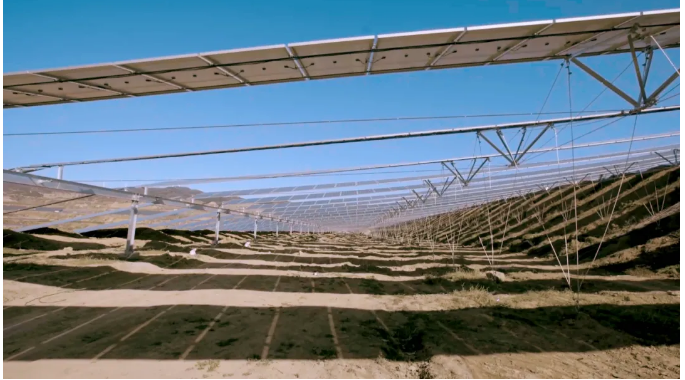 特变电工新能源利用采煤复垦区域的平地和坡地相结合的综合利用土地理念,在建设过程中首次采用柔性支架以及大坡度大跨距斜坡支架技术,有效地降低项目整体建设成本,提高安全耐用性、抵御大风破坏。特变电工新能源项目负责人介绍,“相同土地面积的区域,柔性支架的容量约为常规固定支架的3倍,极大地提升土地利用率,在土地紧缺的情况下确保项目的全容量布置”。