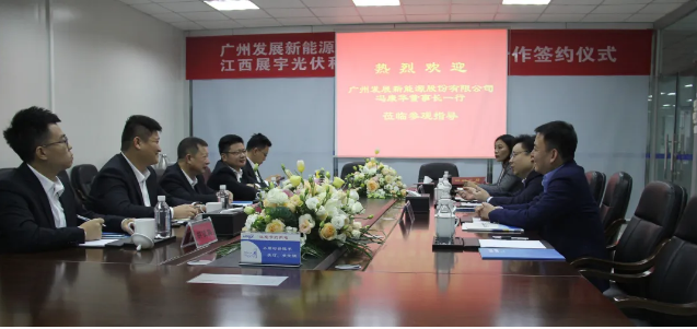 广州发展新能源股份有限公司董事长冯康华首先对展宇光伏的热情接待表示感谢,并就出于双方长远发展战略上的考虑,为积极响应国家新能源政策的引导,实现能源的绿色、高效、智能供应,更好的服务于社会发展,决定与展宇光伏强强联合,共同携手在光伏发电项目领域开展合作。