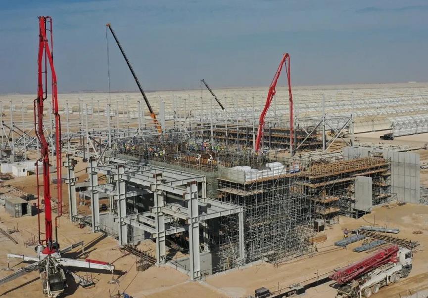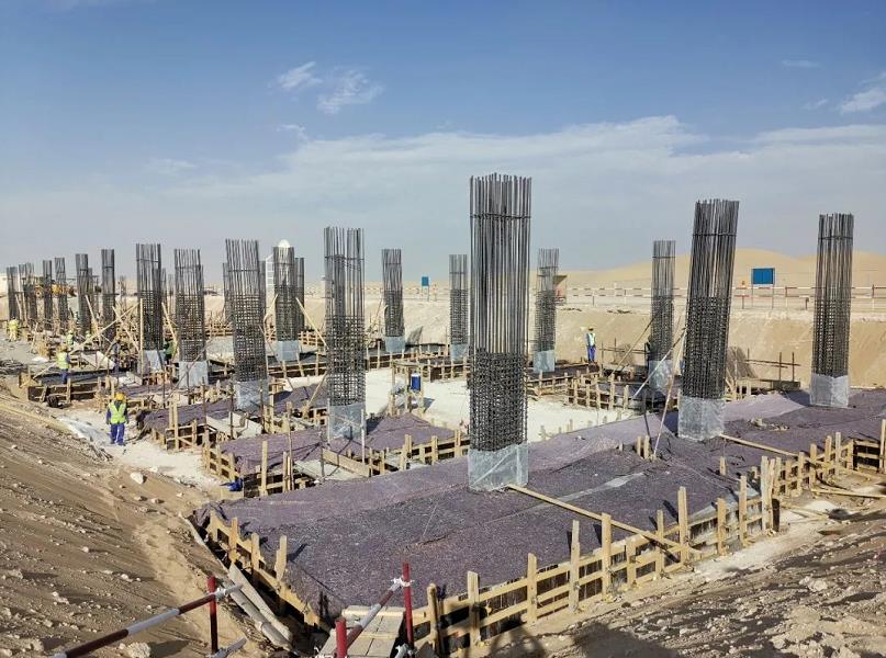 当地时间11月27日,迪拜700MW光热和250MW光伏太阳能电站项目槽式2号机组汽机基座混凝土浇筑顺利完成。