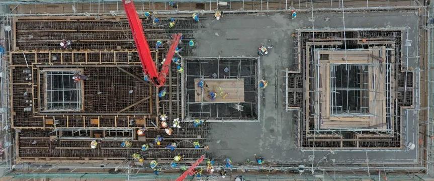据悉,汽机基座为钢筋混凝土框架结构,分为浇筑基座底板、中间平台层及顶部运转层三部分并依次进行浇筑,此次浇筑的是最后一层顶部运转层部分,共浇筑混凝土600立方米,历时整整9小时,为后续汽机基座交安及机务安装工作开展奠定了坚实基础。