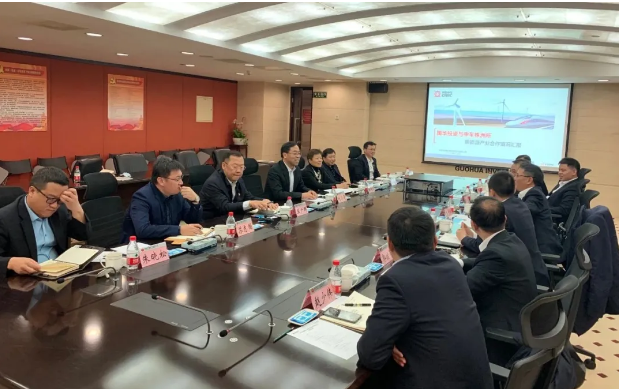 国华投资党委委员、副总经理王广群,副总经济师、氢能产业协同部总经理梅竞谊,规划发展部总经理苏志国,生产技术部总经理李大钧,公司班子成员、时代电气总经理尚敬,株洲所顾问范宝林,株洲所风电事业部总经理朱建成等相关领导参加会谈。