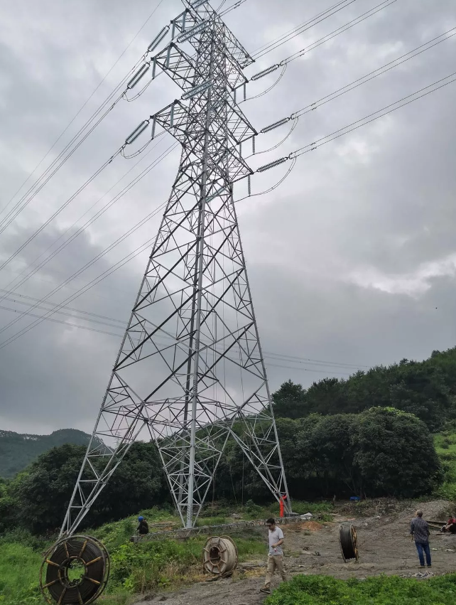 即便在如此环境下,施工人员仍在高山大岭中施展针线活般的细活,逢山开路、遇水搭桥,重达几十吨的塔材通过马帮一根根驮送到山脚下,再采用无人机展放引绳方式架设高空索道运输至山顶组立,再穿行铁塔之间架设导线,深山里的施工每前进一步都需要付出无比的艰辛。