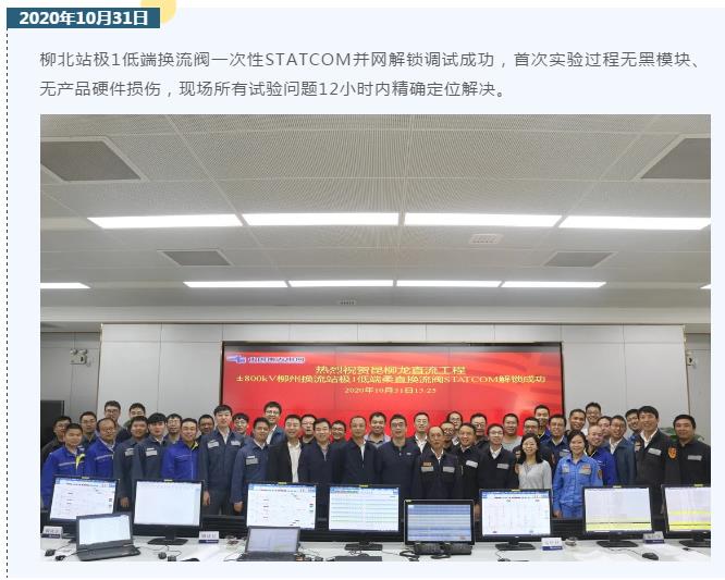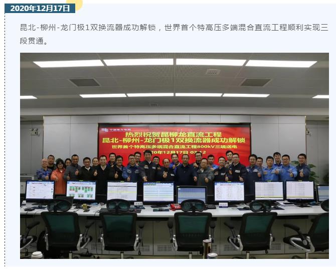 12月27日,由南方电网公司投资建设的国家西电东送重点工程乌东德电站送电广东广西特高压多端柔性直流示范工程(简称昆柳龙直流工程)正式启动投产送电。特变电工为该工程发送端昆北换流站提供14台高端换流变、为接收端广东龙门站提供24台±800kV干式桥臂电抗器、为接收端广西柳北换流站提供2套±800kV柔性直流换流阀。