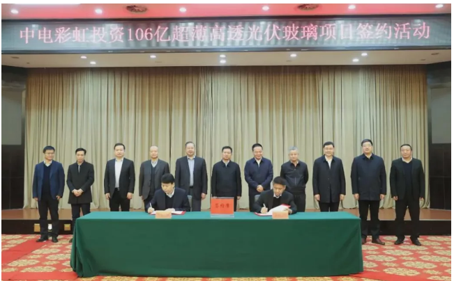 12月28日上午,总投资106亿元的超薄高透光伏玻璃项目在上饶正式签约。该项目由上饶经开区与中电彩虹签署,将在该区建设10座每座日出料量为1000t/d的光伏玻璃窑炉及配套加工生产线,填补上饶光伏产业光伏玻璃配套空白,为打造“世界光伏城” 聚力蓄能。