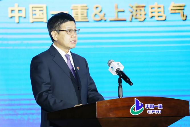 黑龙江省副省长沈莹代表黑龙江省政府对产品成功下线表示热烈的祝贺!希望中国一重、上海电气两家企业与齐齐哈尔市政府,依托区位资源优势,共同在风场项目投标、风电装备制造、风电市场开发、风电人才培养等方面开展深入合作,积极推进可再生能源综合应用示范区建设,加快推动集装备制造、运维服务、投资开发、减污降碳等新能源全产业链建设,打造具有明显优势特色的现代能源经济产业集群。同时,面向市场需求,加强研发投入,加快科技自立自强,进一步增强创新能力,积极融入新发展格局,推进产业链供应链优化升级。省政府将进一步深度挖掘要素资源、产业基础、科技人才、发展环境等方面潜力,继续优化营商环境,全力支持和配合驻省央企各项改革,推动央地合作高质量发展,带动地方发展新能源配套产业,不断打造地企合作新样板,不断助力龙江全面振兴、全方位振兴和高质量发展,为国家建设和黑龙江省经济社会发展提供强有力支撑。