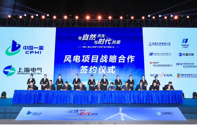 上海电气副总裁、风电集团党委书记、董事长金孝龙在致辞中说,在黑龙江省、齐齐哈尔市各级党委政府领导的关怀下,中国一重、上海电气以及参与到黑龙江省风电行业发展的各企业将充分合作、发挥各自优势、整合优势资源、实现合作共赢,大大推动当地经济发展与能源转型,为黑龙江省低碳绿色事业发展、为我国早日实现碳中和目标作出应有的贡献。