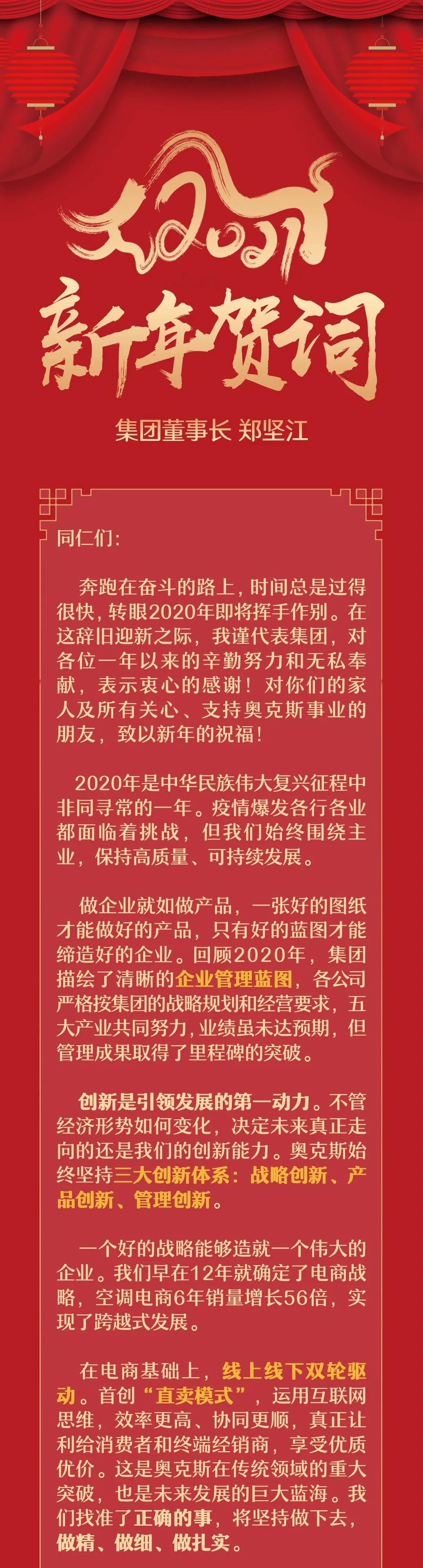“创新追梦”!奥克斯集团董事长郑坚江发表新年贺词