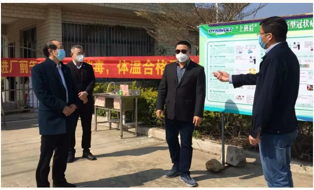 2月22日,猛狮科技陈乐伍董事长亲临福建动力宝,视察福建动力宝对新冠肺炎的防控措施以及复工准备工作,王少武总裁、郝身健副总裁陪同视察。