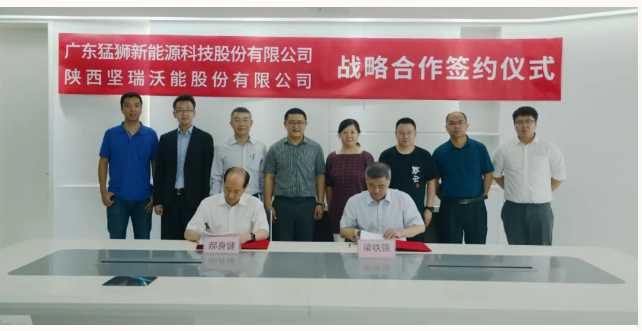 5月29日,猛狮科技与坚瑞沃能签署战略合作协议。双方将充分发挥自身技术优势,建立长期、稳定、良好的资源共享与战略合作关系,共同在动力电池制造、储能系统制造等方面开展深度合作,实现优势互补,互利共赢。