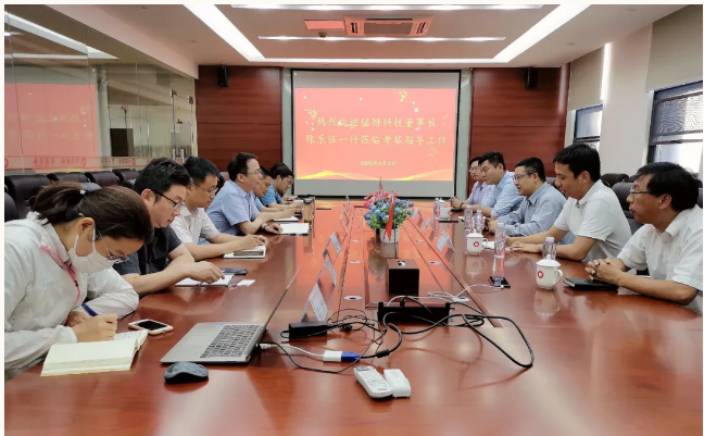 6月4日,陈乐伍董事长考察中建材旗下安徽天柱绿色能源公司。就增强在储能和新能源发电工程等方面的合作进行了愉快和富有建设性的会谈。