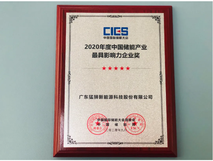 9月28日,猛狮科技荣获2020年度中国储能产业最具影响力企业大奖。
