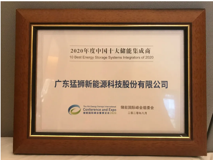 9月1日,猛狮科技荣获2020年度“储能国际峰会暨展览会”十大储能集成商奖。