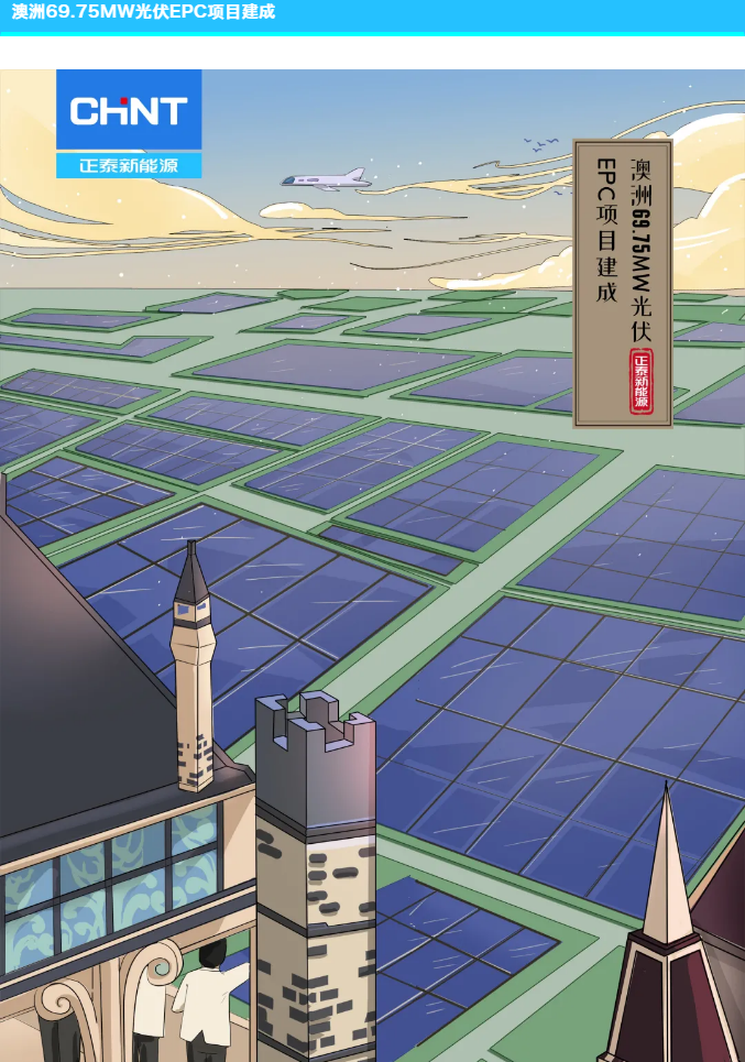 5月,正泰新能源澳大利亚Goonumbla EPC光伏电站项目顺利完工,该电站交流侧装机容量为69.75兆瓦,年均发电量约19.5万MWh,可为4.5万户澳大利亚家庭提供清洁能源,每年可减少二氧化碳排放约14万吨。由正泰新能源与西班牙Gransolar组成联合体共同负责工程总承包建设,正泰新能源为电站提供269235块自主研发生产的CHSM6612P系列高效组件。
