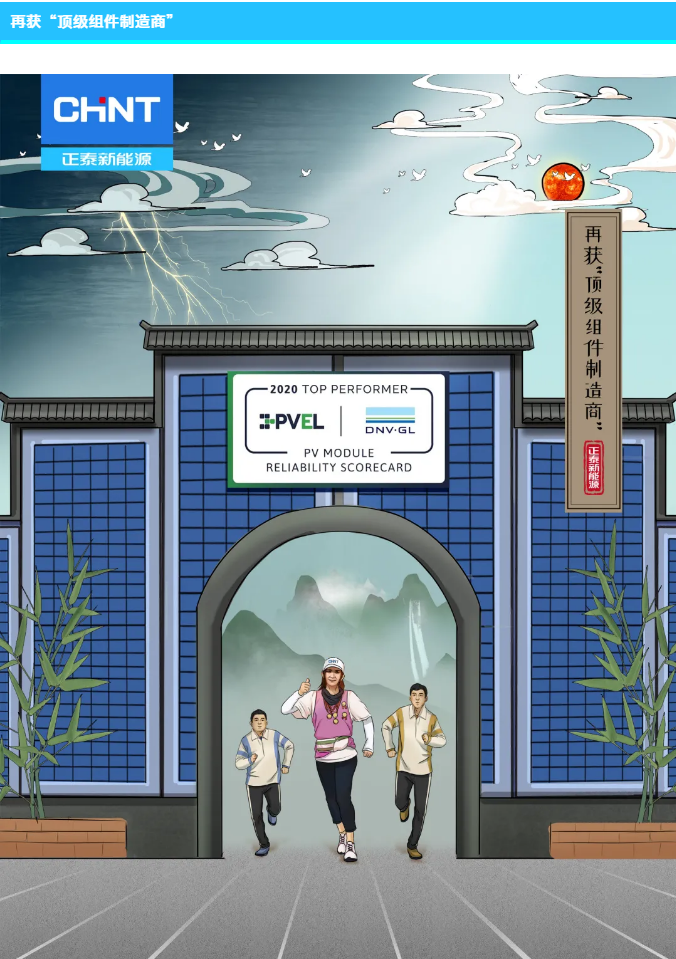 5月28日,光伏演化实验室(PVEL)和挪威船级社(DNV GL)针对全球发布“2020光伏组件可靠性记分卡”,正泰新能源第四次荣获Top Performer顶级组件制造商荣誉。其中,AstroTwins双面系列组件在每项PQP测试序列中均获得Top Performer,是所有参赛者中仅有的一位5项全能大满贯“选手”,竭诚兑现了正泰ASTRO组件“缔造持久高效绿色能量”的价值主张。