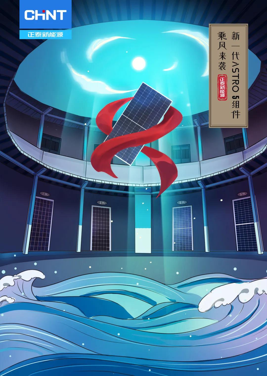 正泰新能源推出新一代ASTRO 5系列高效高功率组件,基于正泰PERC+电池技术,采用182大尺寸电池片,结合多主栅半片设计、无损切割和高密度封装,实现高功率、高效率、高兼容性、高品质、低BOS和LCOE五大核心优势,72/78版型功率分别可达550W/595W,效率超过21.5%,在实现组件功率大幅飞跃的同时,也确保了效率的提升。
