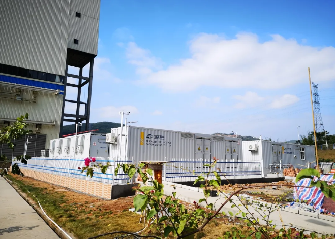 广东茂名某热电储能调频项目总装机容量1150MW,2020年9月正式投运。本项目储能建设规模为20MW/10MWh,由4套5MW/2.5MWh级联型高压储能系统并联而成,电池选用磷酸铁锂电池。