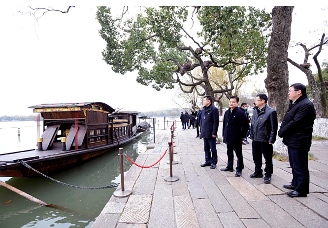 ▲浙能集团党委书记、董事长胡仲明一行瞻仰南湖红船。