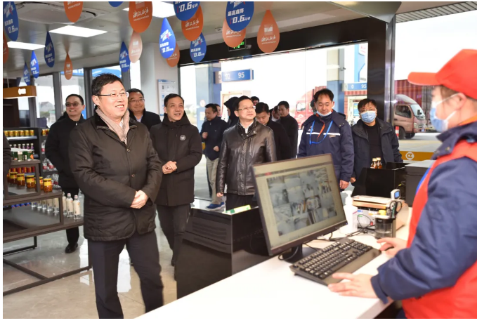 ▲浙能集团党委书记、董事长胡仲明到浙石油综合能源销售嘉兴分公司调研。