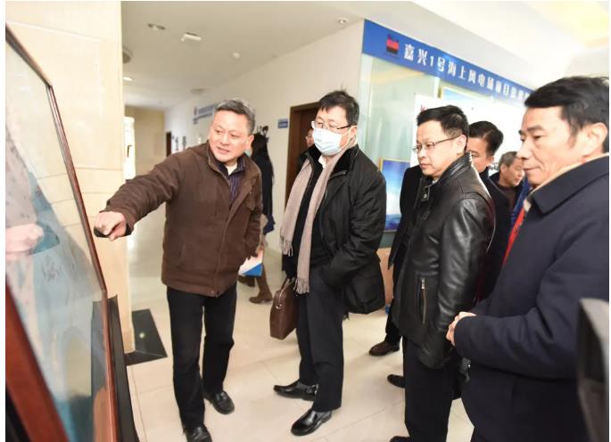 离嘉华发电公司不远处的嘉兴海上风电项目部工作人员正紧张忙碌着。胡仲明一行来到项目部办公场所,了解海上风电项目主要情况。在听取浙新能源集团、嘉兴海上风电公司、省电力建设公司等单位的情况汇报后,他肯定了嘉兴海上风电项目建设所取得的成绩,并提出三点要求。一是咬定目标,倒排时间节点,在确保安全的前提下,全力以赴打赢年底海上风电全容量并网发电攻坚战;二是要把握发展窗口期,科学谋划好“十四五”新能源发展目标,同时确保在建项目早达产早出效,努力将在建项目建成示范项目,为后续其他新能源项目的争取奠定基础;三是抓好安全生产与维稳工作,确保工程建设安全平稳推进,持续加强与各参建单位的沟通协调,加快推进嘉兴1号海上风电项目建设。