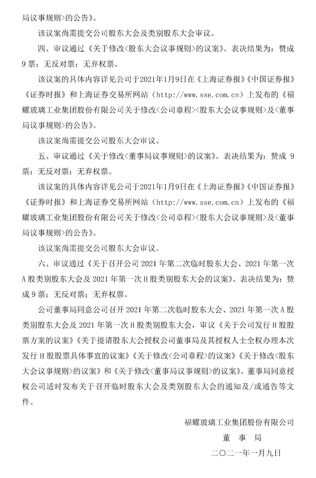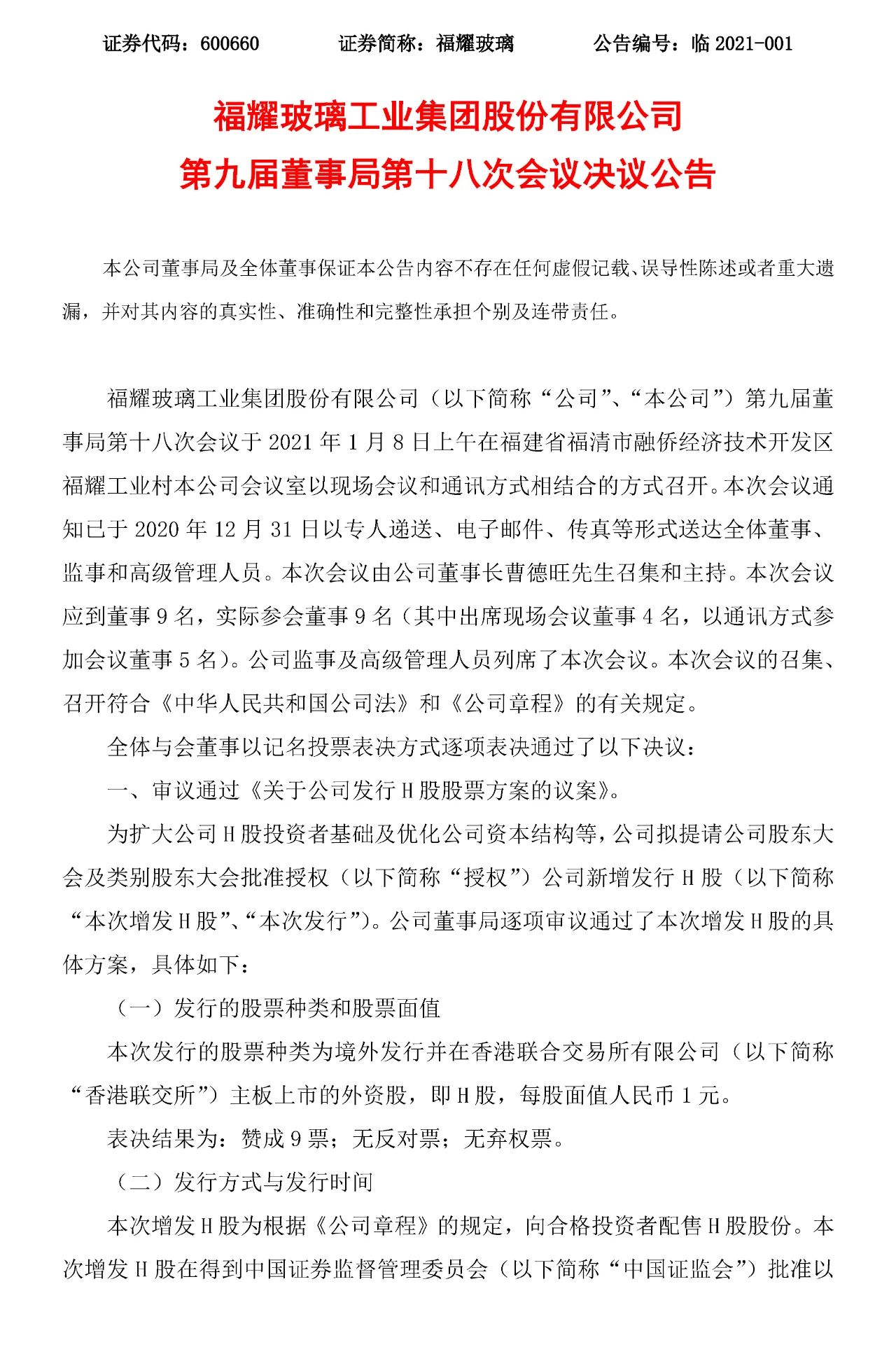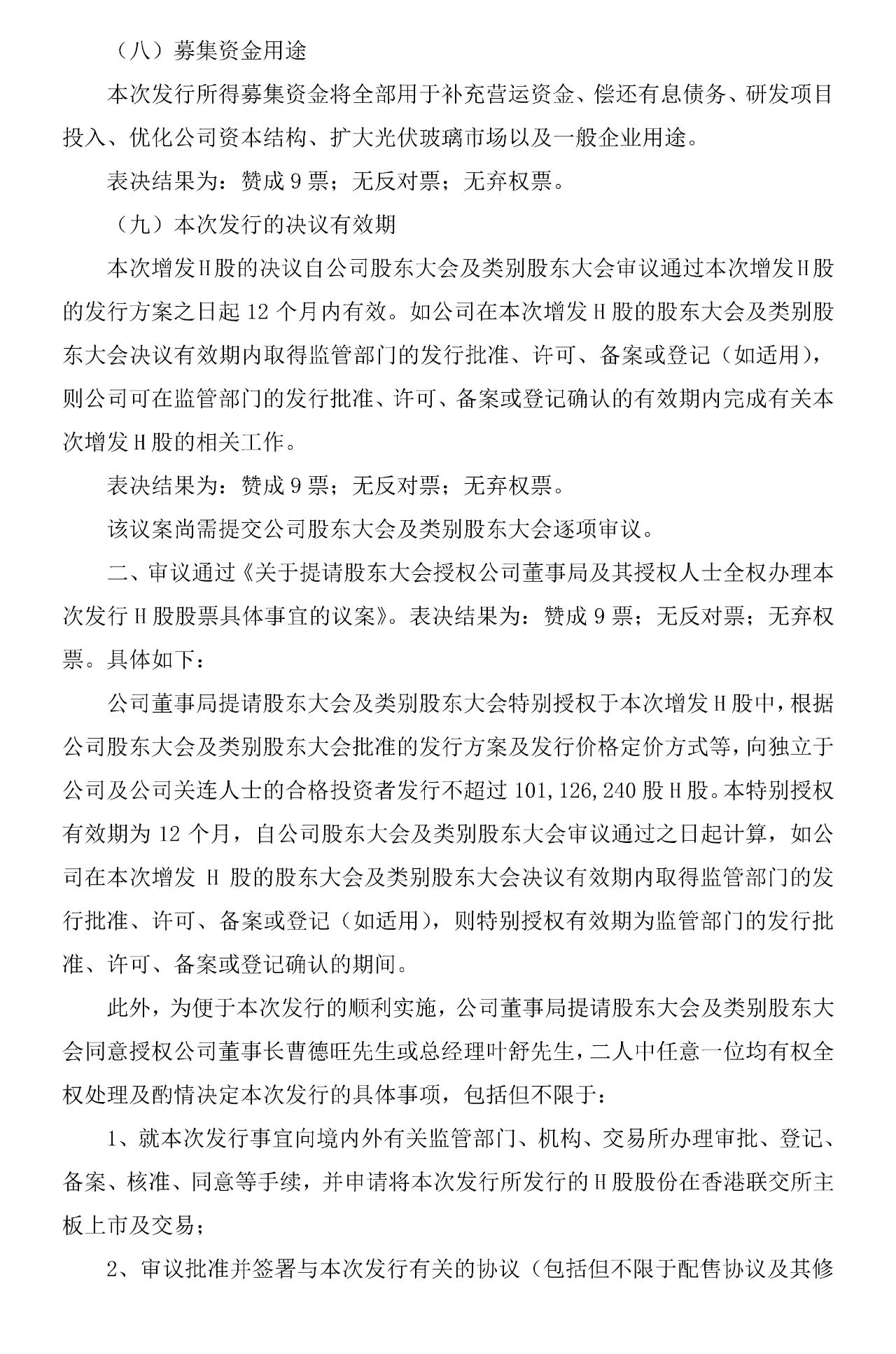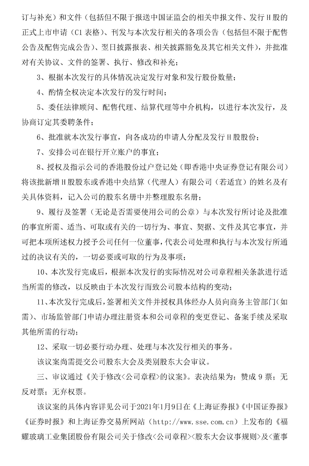 2021年1月8日晚间,福耀玻璃公告称,公司拟提请公司股东大会及类别股东大会批准授权公司新增发行H股,本次增发H股的总数不超过1.01亿股,扩大光伏玻璃市场以及一般企业用途。