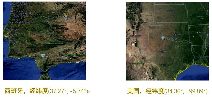 此次双排竖装2P平单轴跟踪测算,项目地选取在欧洲西班牙、美国德克萨斯典型光伏电站项目应用地区,地点经纬度坐标及气候条件如下: