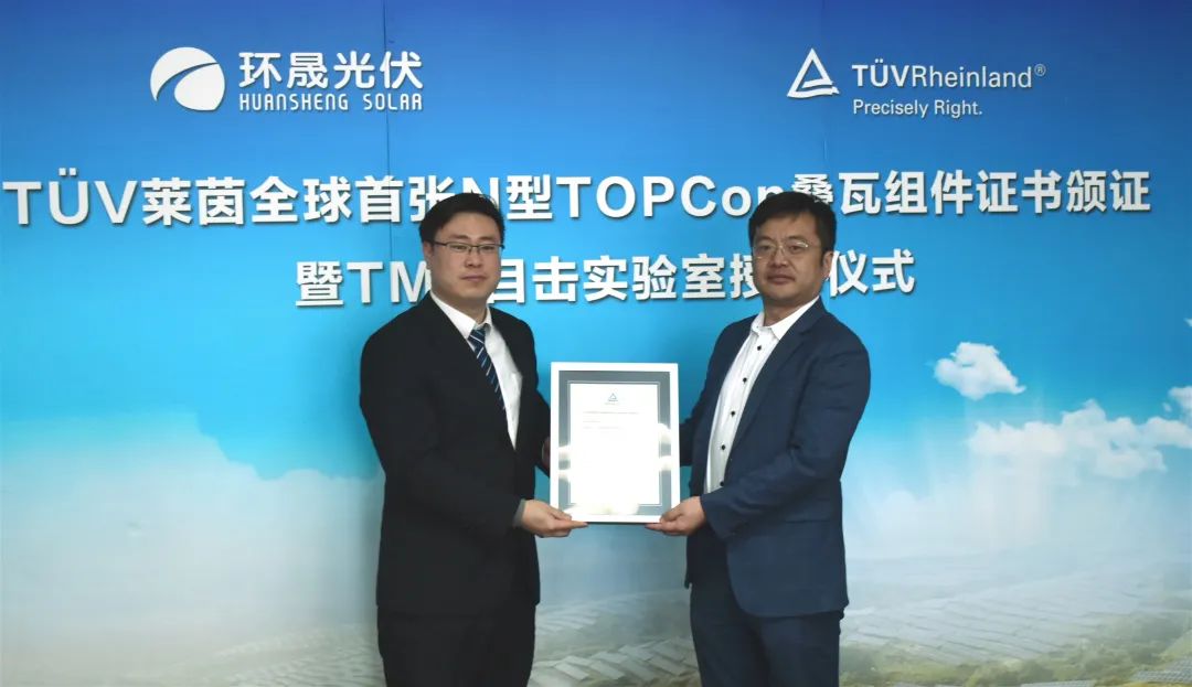 双喜临门!环晟光伏获TÜV莱茵全球首张N型TOPCon叠瓦组件新标证书及TÜV莱茵认可实验室资质