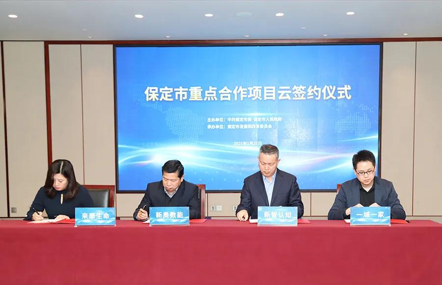 在签约仪式上,新智认知数字科技股份有限公司、新奥数能科技有限公司、来康生命科技有限公司、一城一家网络科技有限公司,分别就智能城市和园区项目、数字能源平台泛能网项目、家庭智能健康服务项目、智能生活服务平台项目,与保定市政府相关部门、企业签订了具体子协议。
