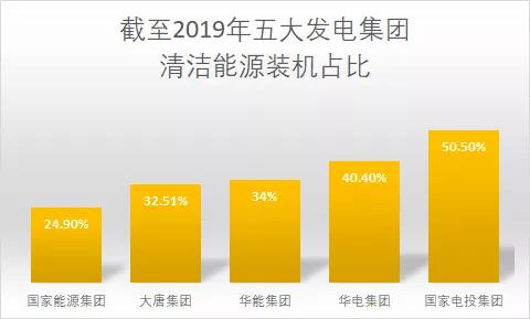 而大唐集团和华能集团给出的目标则是,到2025年清洁能源装机超过50%,国家电投给出的目标最高,到2025年达到60%。
