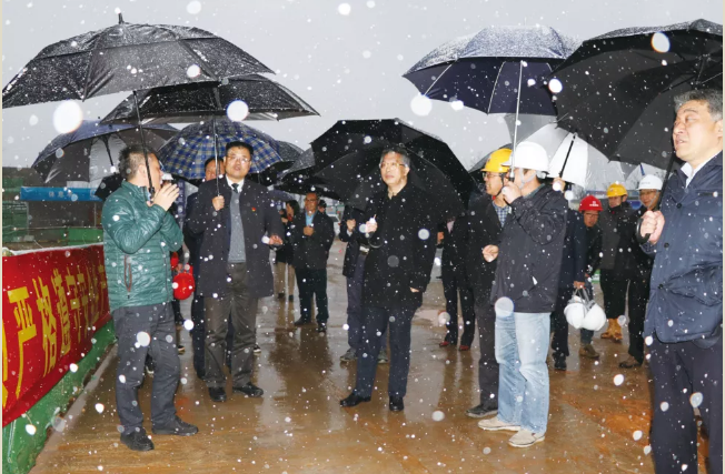 浙能集团党委书记、董事长童亚辉和长兴县县委书记周卫兵冒雪视察园区建设情况