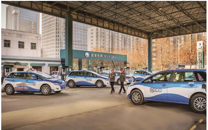 ▲公司员工在电动汽车充电站检查充电桩运行情况