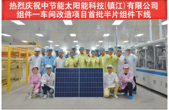 4月12日,中节能太阳能镇江公司组件一车间技改升级项目首批半片组件正式下线,并于六月份开始持续量产。