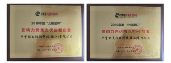 公司荣获——2019年度北极星杯影响力光伏电池、组件品牌/优秀光伏创新企业