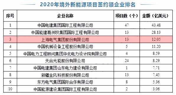 位列第3!上海电气12.05亿美元金额跻身“境外新能源项目签约额企业”分榜