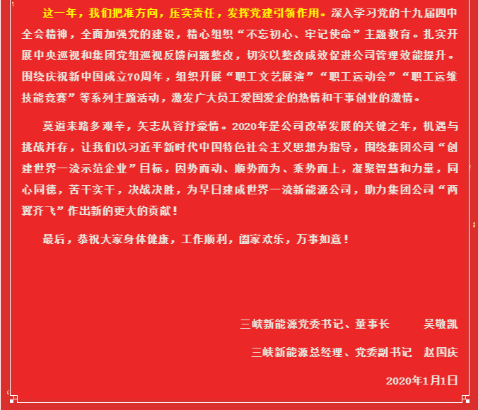 三峡新能源2020年新年贺词:只争朝夕,不负韶华