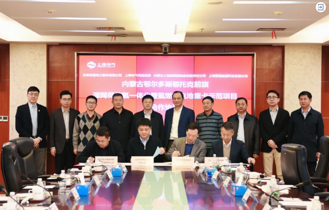 一个月之后,内蒙古鄂尔多斯鄂托克前旗源网荷储氢一体化暨氢燃料电池重卡示范项目合作协议签订。根据协议,上海电气电站集团、京能电力等四家企业将共同参与这一综合能源及绿色化工、绿色交通协同发展的新生态建设,以丰富能源产业应用场景。