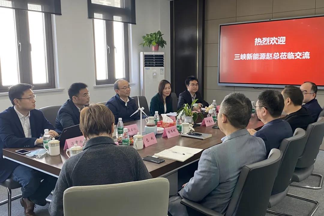 天顺风能集团董事长严俊旭、设备事业部总裁陈伟明、资产服务事业部总裁包斌、董事会秘书朱彬对三峡新能源赵总一行人员的来访表示欢迎,双方就风电设备制造、新能源开发及运维、智慧能源发展等进行深入沟通和交流。并展望在新的一年里,双方优势互补,在重点项目资源获取及电站运营方面加强合作,实现双赢。