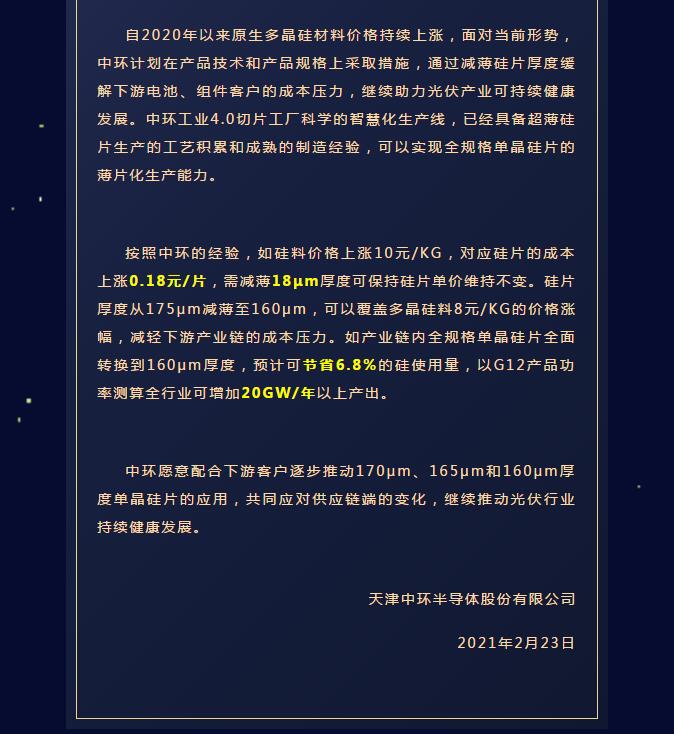 “力推光伏行业持续健康发展”!中环股份关于技术创新和产品规格创新降低硅料成本倡议书