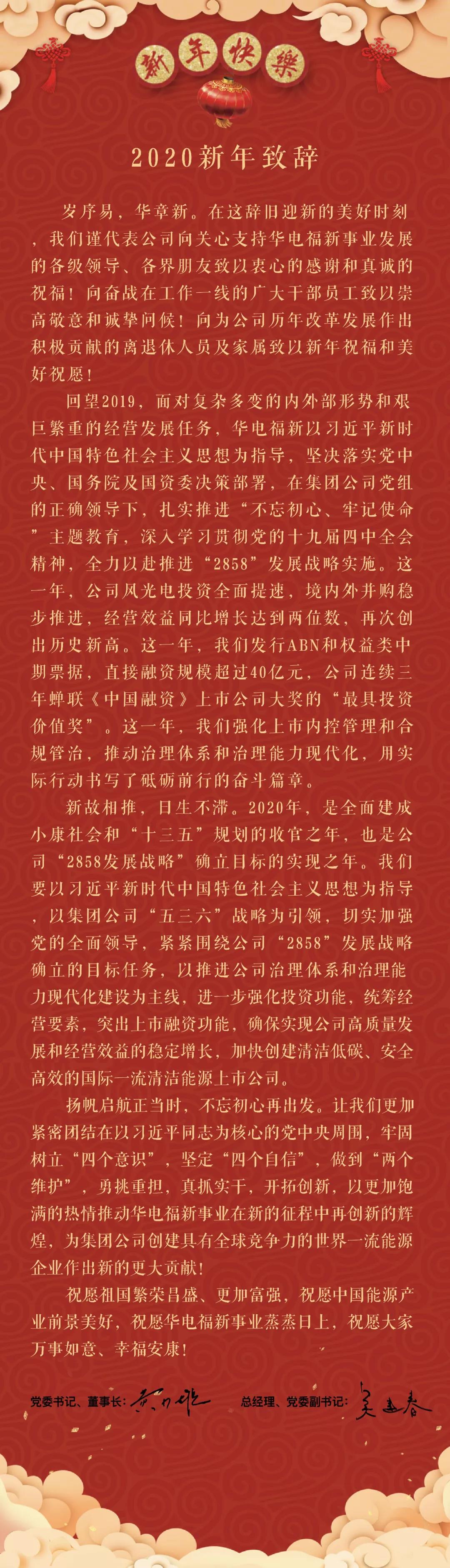 华电福新能源2020新年致辞:扬帆起航正当时,不忘初心再出发