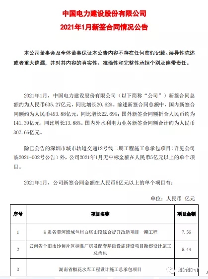 据获悉,中国电建近日公布了1月份签单情况。其中签下江苏省协鑫如东 H13#海上风电项目 EPC 总承包、江苏省协鑫如东 H15#海上风电项目 EPC 总承包、越南 HBRE 诸博容(CHU PRONG)50MW 陆上风电总承包项目,总计金额44.03亿元。以下为公告原文: