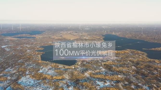 在陕西与内蒙古交接的广漠之地,闪耀着一片深蓝色的210至尊组件,这就是天合光能陕西省榆林市小壕兔乡的100MW平价光伏电站项目。