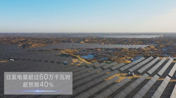 该项目全部采用天合光能至尊系列双面双玻组件。项目占地面积约2,300亩,2020年9月动工,12月10日并网发电——全程只用了100天的时间。自并网以来,今年1月初的日发电量已达60万千瓦时,最佳发电时段的发电量还会更高,超预期40%。