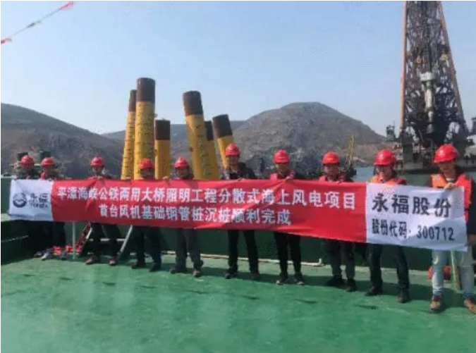 近日,由永福股份作为EPC总承包牵头方及设计方的国内首个分散式海上风电项目——平潭海峡公铁两用大桥照明工程分散式海上风电项目首台风机基础钢管桩沉桩顺利完成。