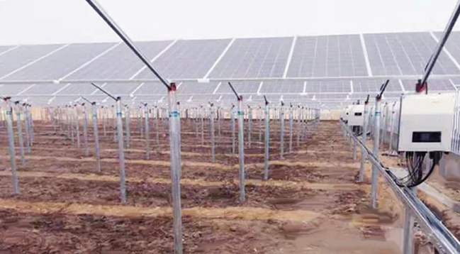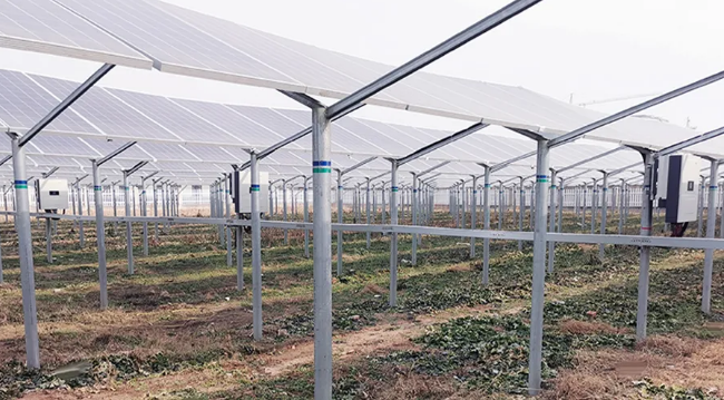 江苏盐城市滨海县处于北半球中纬度,四季分明,气候温和,并且有着得天独厚地光照资源,当地依托资源优势,投资建设了1.2MW光伏扶贫电站,该电站与传统电站稍有不同,采用农光互补多元产业发展模式,上方光伏板发电、光伏板下兼顾农业生产,实现“一地二用,农光互补”,成为当地贫困户脱贫致富的经济保证。