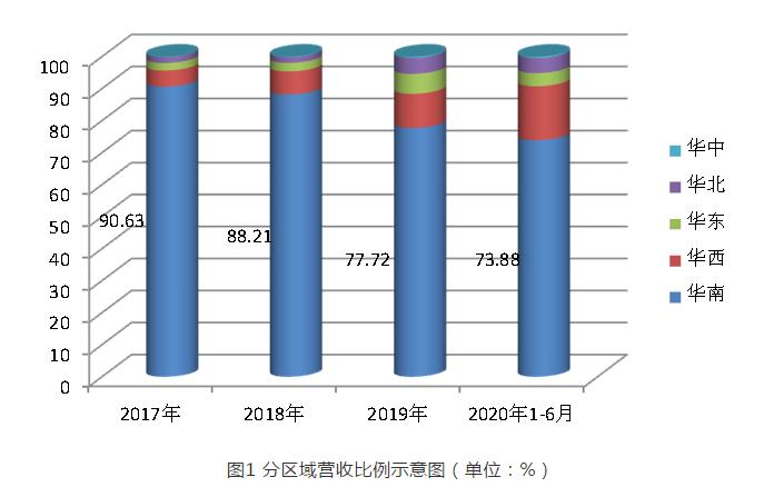 角逐全国市场。南网能源致力于从南方电网覆盖范围走向全国,区域布局不断优化。从地域分布来看,华南市场从占营收的90%以上下降到四分之三以下,华南以外的市场占比逐步提升,其中华西、华东、华北区的业务增长较快,南网能源在南方电网属地外的竞争优势不断显现。特别是华西区域,连续实现市场翻翻,营收占比达到16.87%。详见图1、图2。