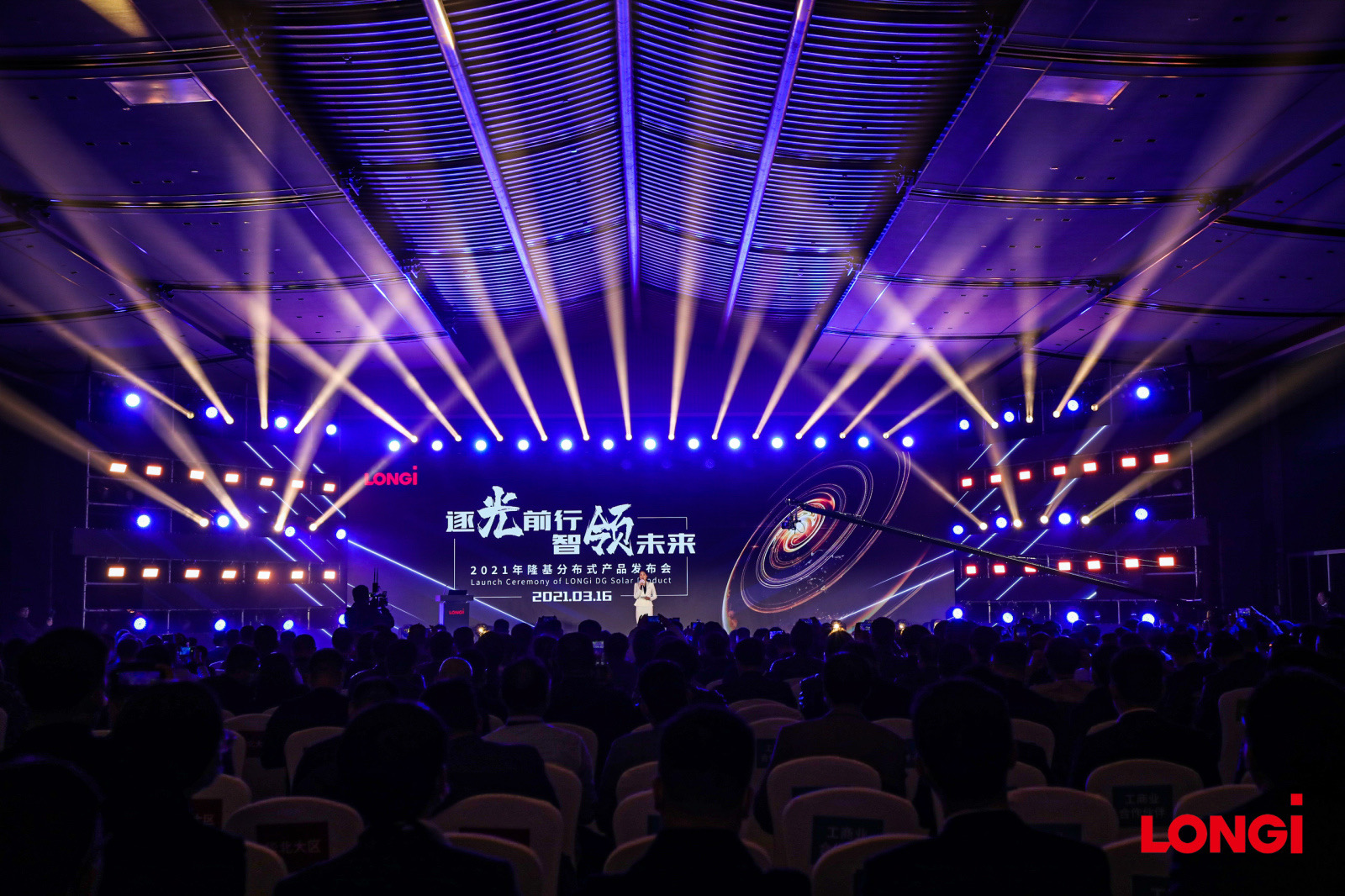 2021年3月16日,“逐光前行,智领未来”——隆基分布式产品发布会暨全国经销商大会在乌镇隆重召开。隆基乐叶高级副总裁佘海峰、隆基乐叶副总裁吕俊博士、隆基乐叶副总裁姜文杰、隆基乐叶分布式战略管理部总监牛燕燕等领导与来自全国各地的500多家经销商共同探讨中国分布式光伏发展前景。本次大会,隆基重磅推出了Hi-MO 4m家族全新成员Hi-MO 4m 66版型组件,与原有的60版型、72版型形成高效产品矩阵,更好地为分布式项目服务。