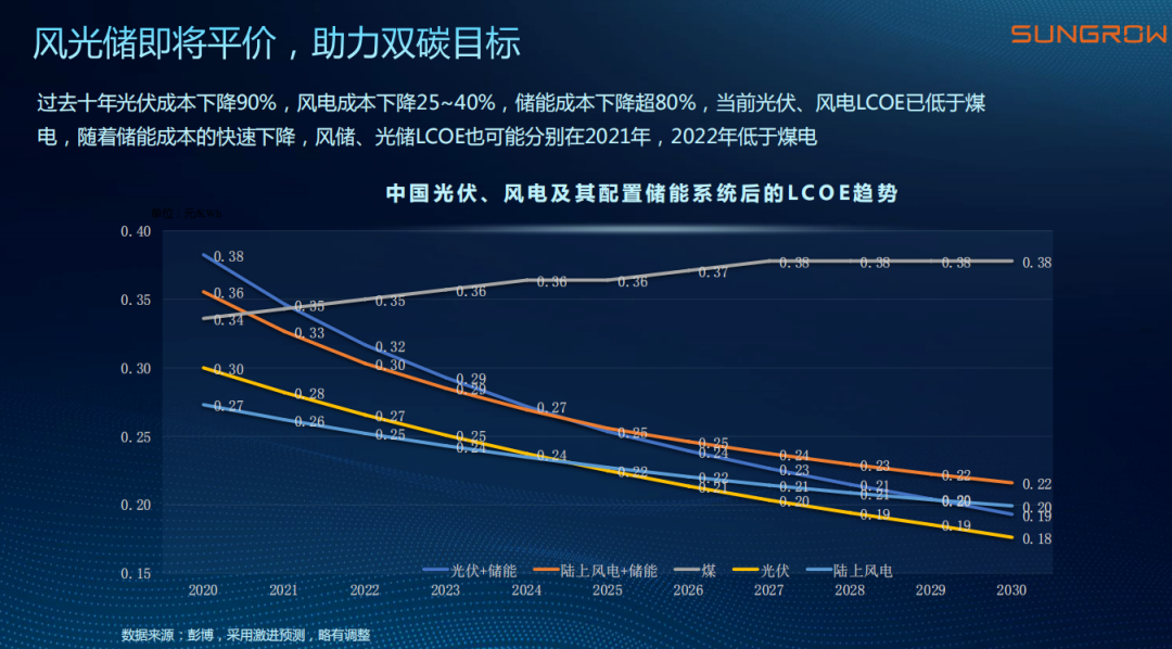 去年我们已经实现了在大部分地区的光伏和风电平价,今年随着储能成本的进一步下降,风储、光储已接近于平价,所以这个平价时代也会快速到来。