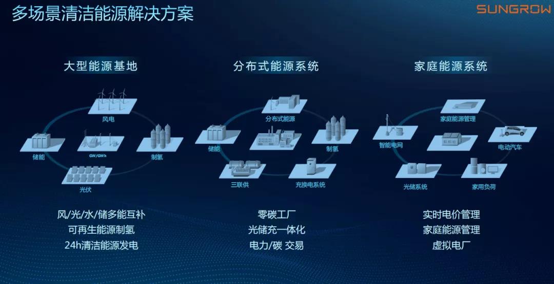 在如此明确的清洁能源发展方向上,阳光电源提出了多场景的解决方案和创新方向。