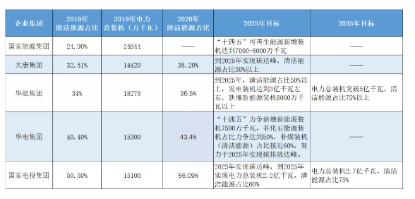 在五大发电集团中,华能集团是第一家提出“十四五”新能源装机目标的。1月18日,华能集团在官网率先披露,“十四五”期间,集团计划新增新能源装机8000万千瓦以上,确保清洁能源装机占比50%以上。