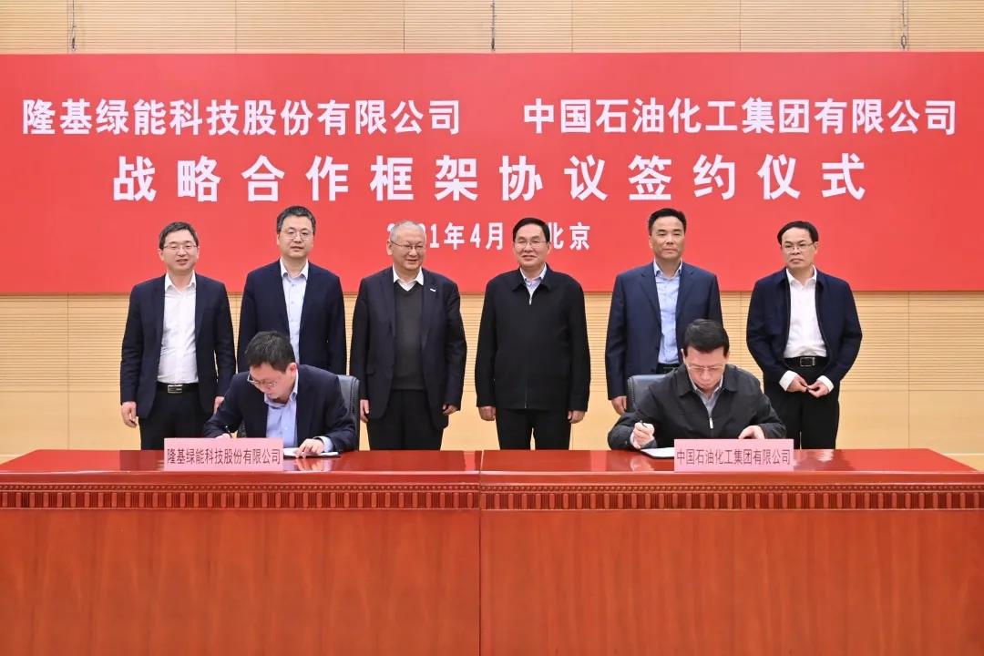 4月13日,隆基绿能科技股份有限公司(以下简称隆基股份)与中国石油化工集团有限公司(以下简称中国石化)在京签署战略合作协议。未来双方将以国家“2030年前碳达峰、2060年前碳中和”目标为指引,发挥各自优势,通过全方位协同,在分布式光伏、光伏+绿氢、化工材料等多领域形成深度合作,共同开拓清洁能源应用市场。