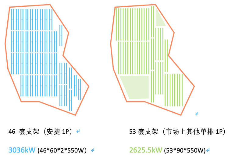 全面节省BOS成本:相同装机量,安捷支架数量减少33%